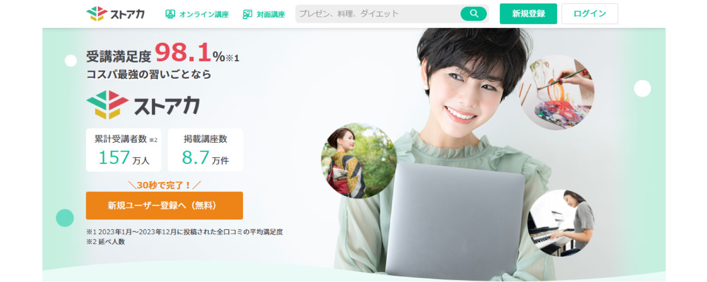 ストアカは、全国の講師が提供する多種多様な習い事やスキルアップ講座を1回から気軽に受けられるプラットフォームです。