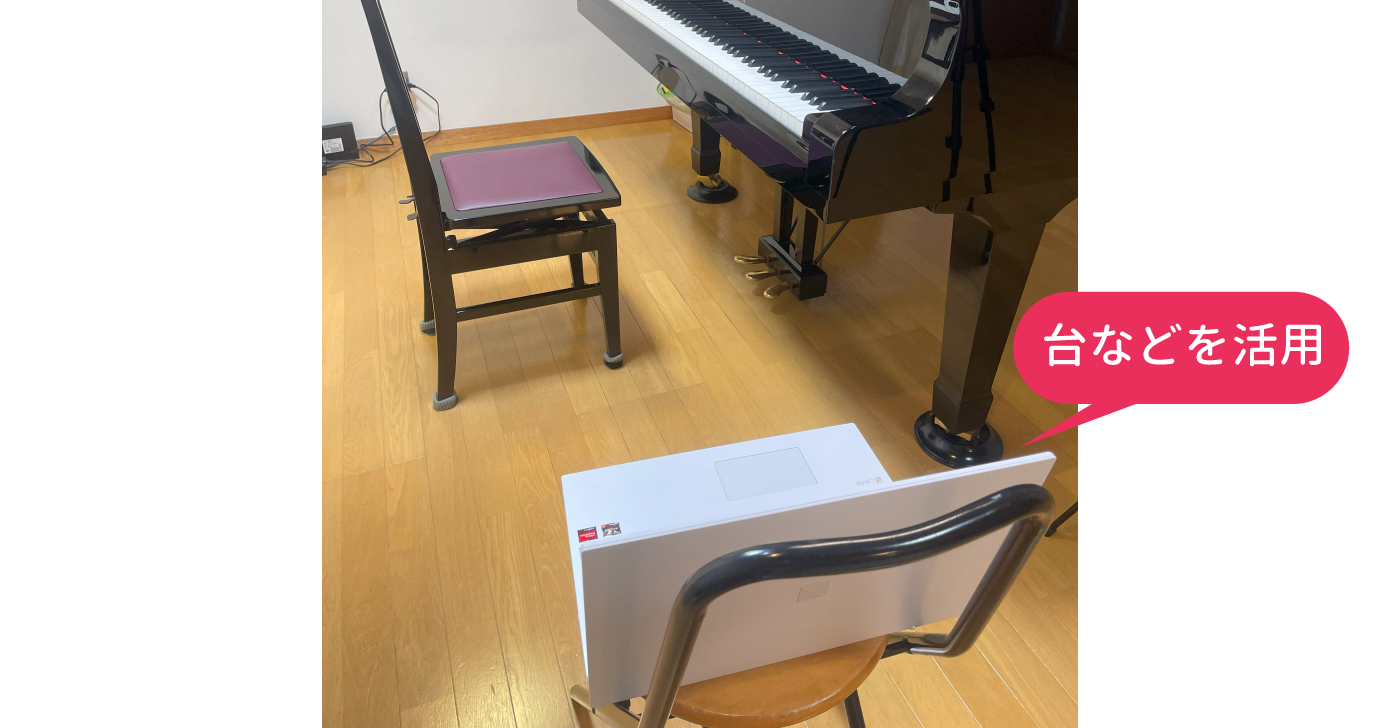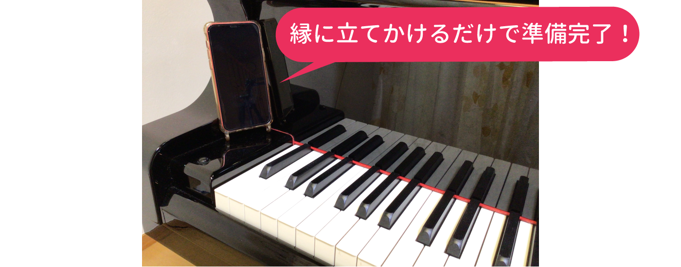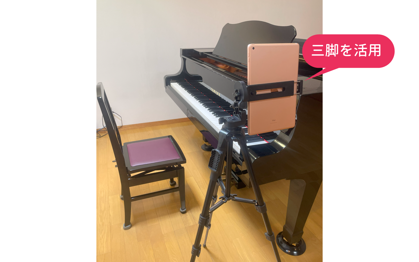弾いている手元や上半身を映せるように、横から映すことをおすすめしています。