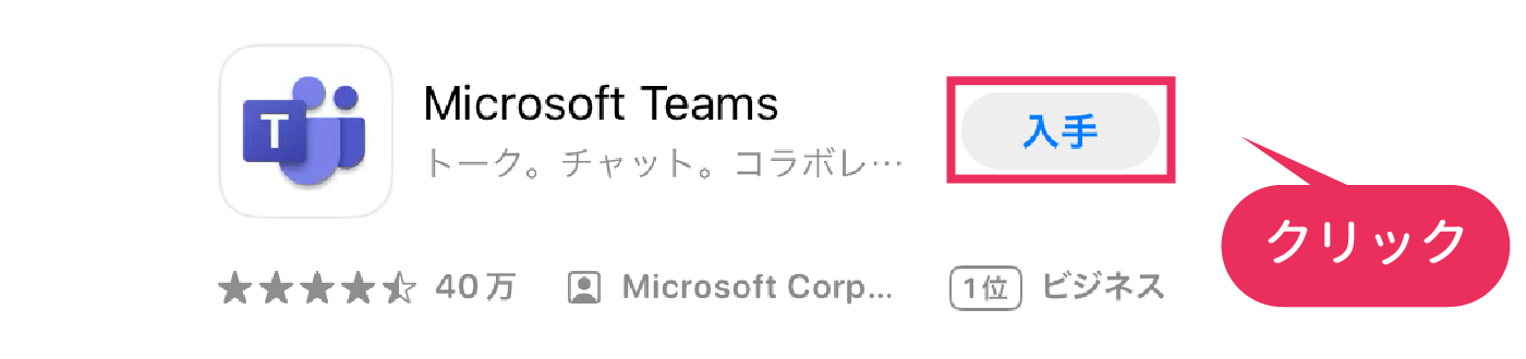 「App Store」で「Teams」と検索します。「Microsoft Teams」というアプリを入手し、インストールします。
