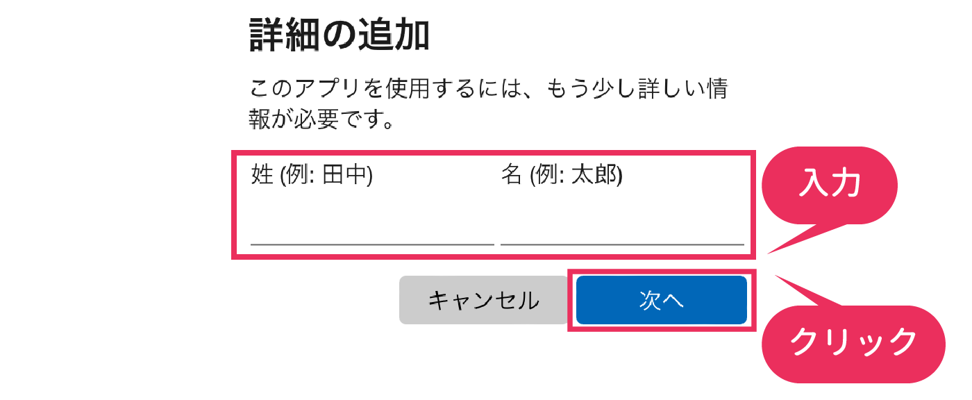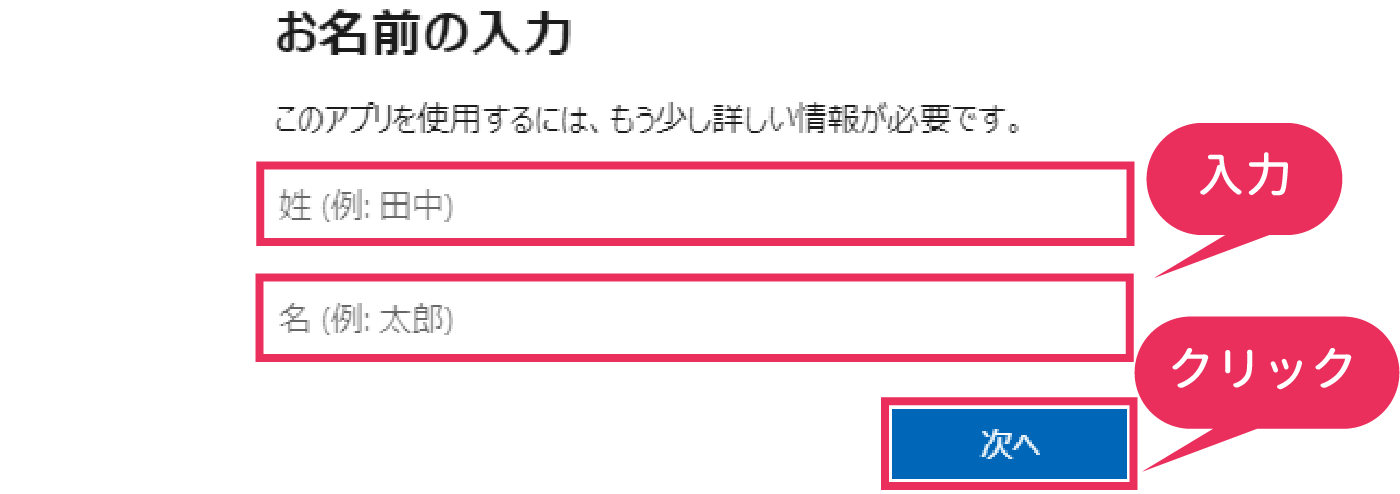 セキュリティチェックが終わると、氏名の入力画面が出ます。