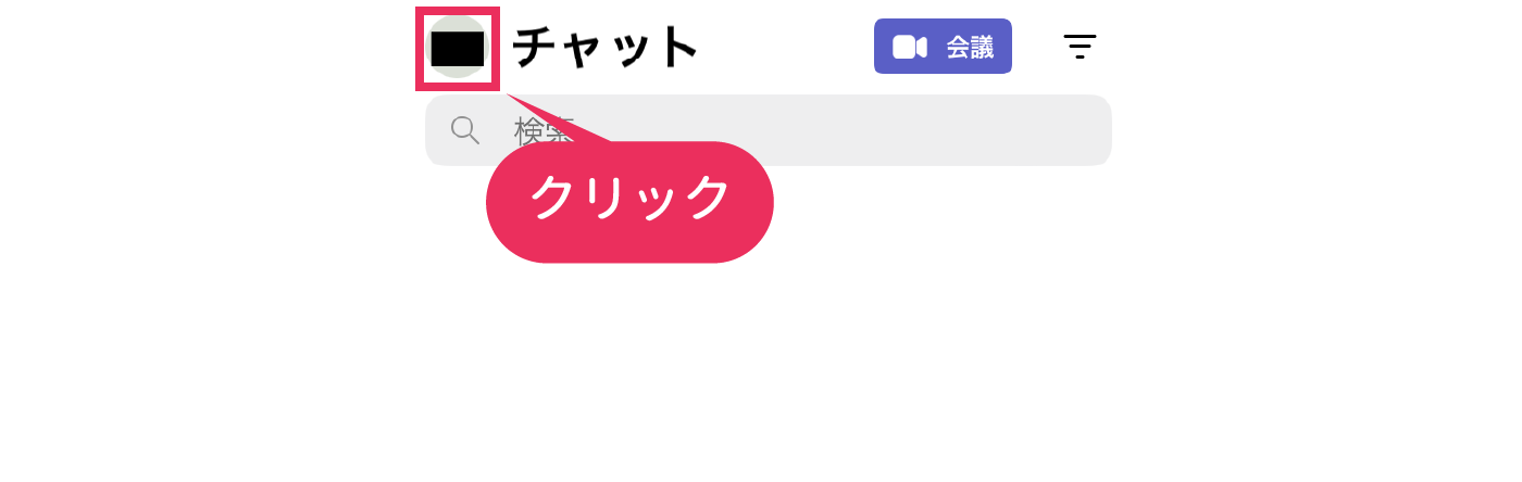 Teamsの画面の左上にあるアカウントのアイコンをクリックしてメニューを表示します。