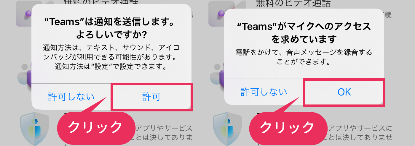 ❼通知とマイクへのアクセスを確認(初回のみ)