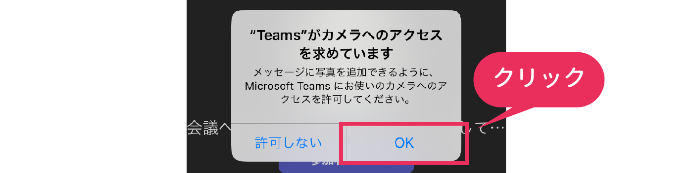 カメラへのアクセスを求める表示が出るので、「OK」をクリックします。