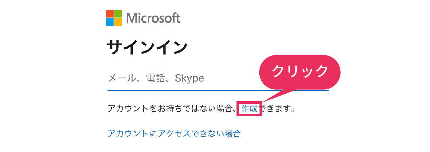 Midrosoftアカウントをお持ちでない方は「アカウントを作成しましょう」をクリックします。