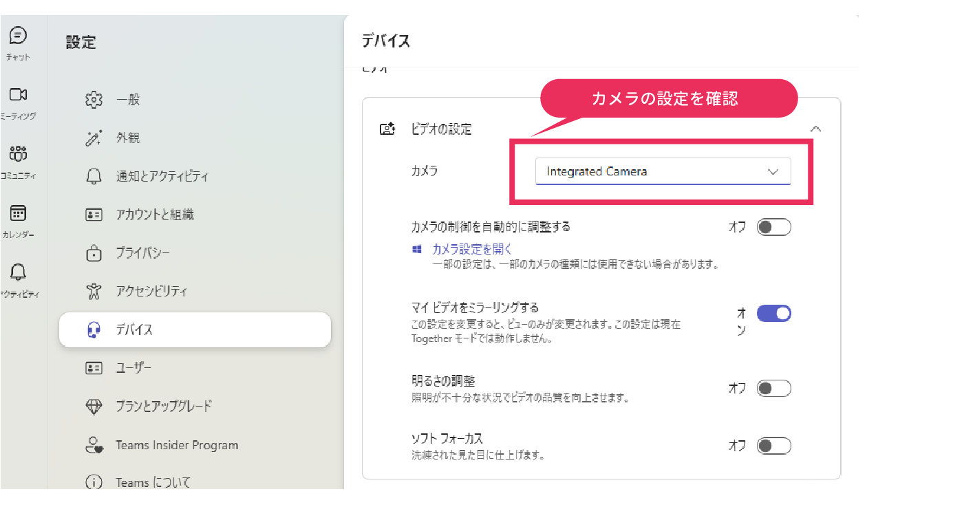 次に、右側のメニューを下にスクロールし、カメラが設定されていることを確認してください。