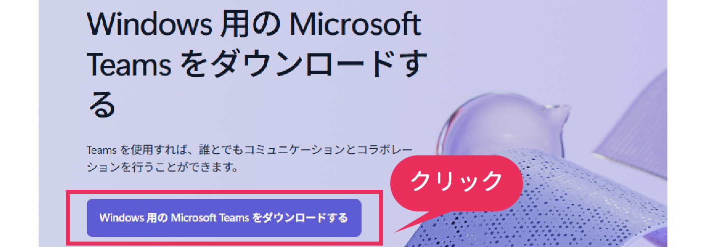 「Windows 用の Microsoft Teams をダウンロードする」をクリックします。