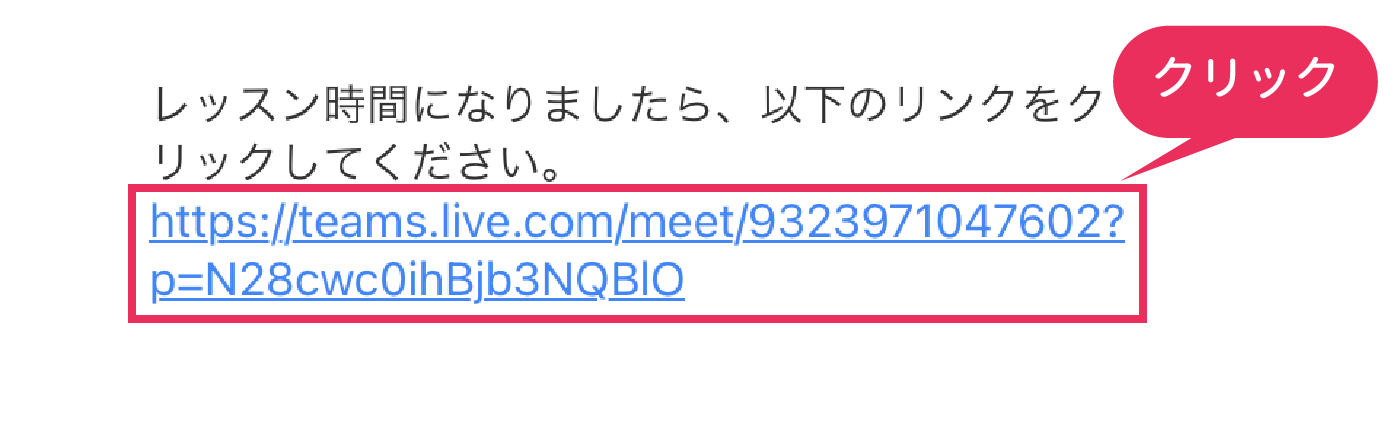 レッスン予約完了メールのURLをクリックします。Microsoft Teamsアプリに接続されます。