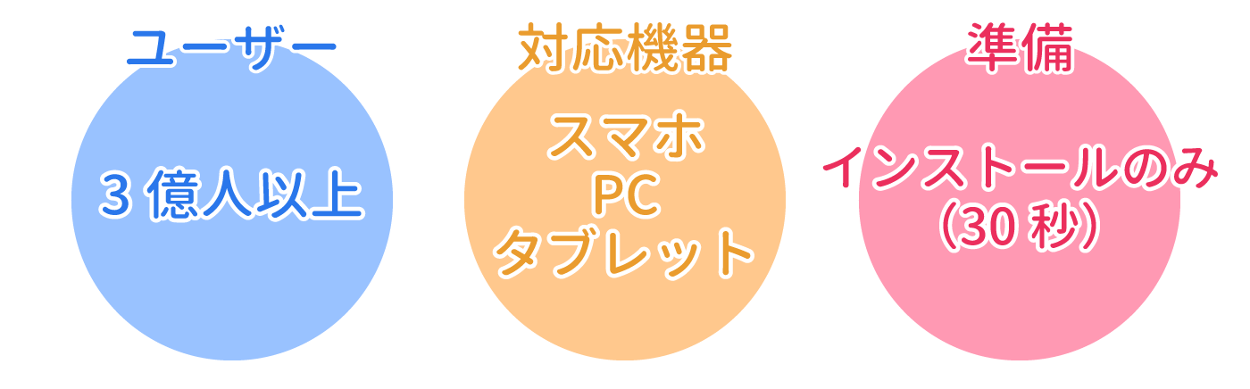 PC、スマホ、タブレット、どれでも利用できますし、準備は30秒のインストールで完了です。