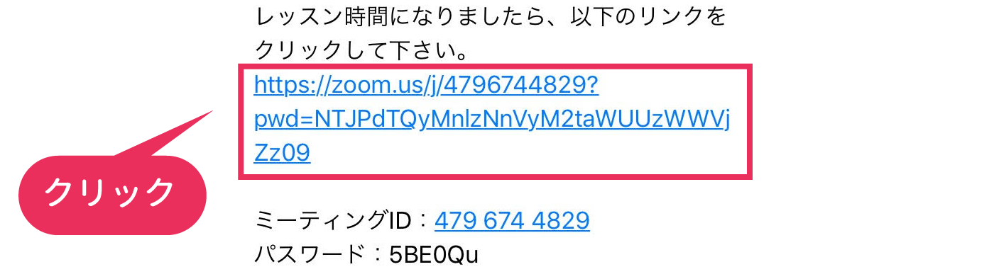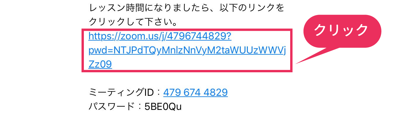 レッスン予約完了メールのURLをクリックすると、Zoomミーティングアプリに接続されます。