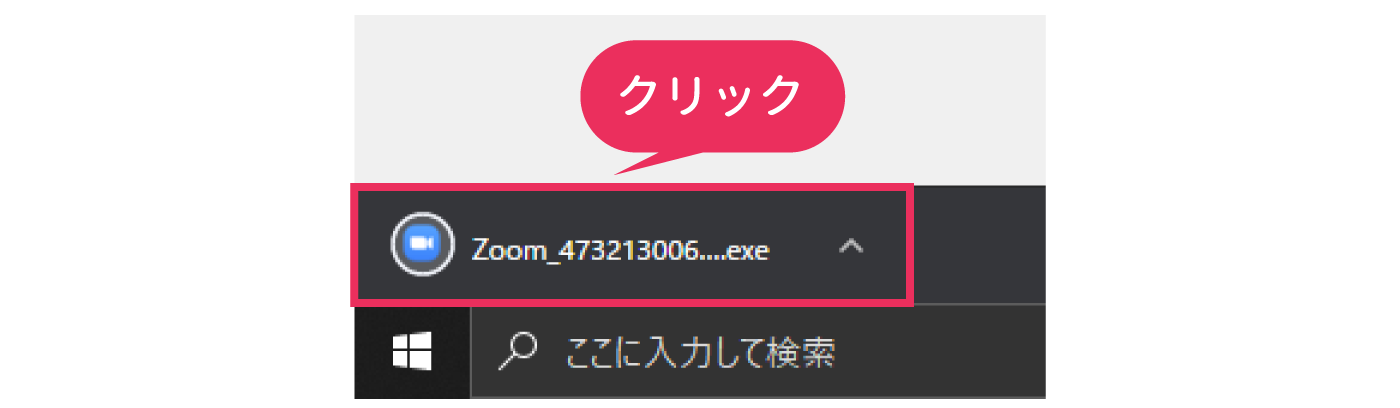 ダウンロードが完了すると、画面左下にオレンジの表示が出ますので、ダウンロードしたファイルをクリックしてください。
