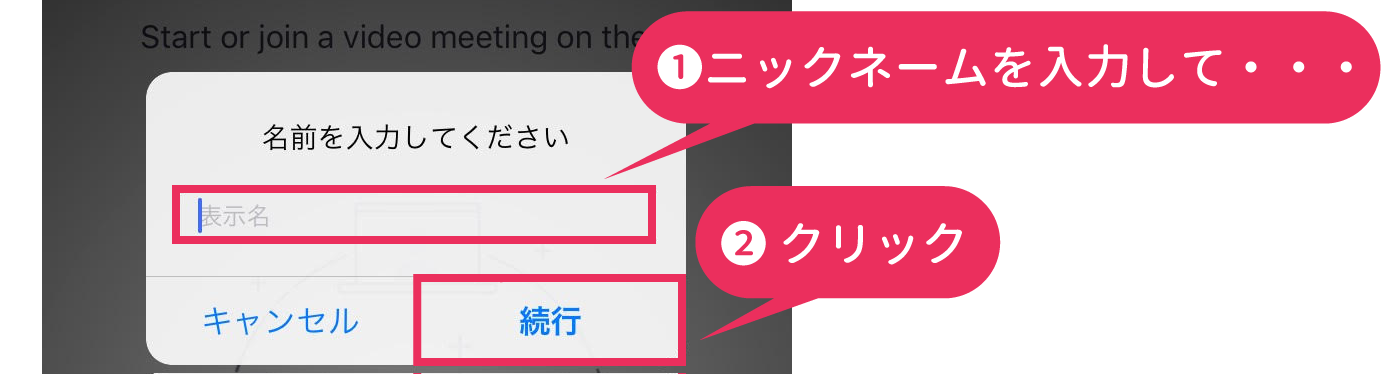 名前を入力する画面が出てくるので、ニックネームを入力し、「続行」をクリックしてください。