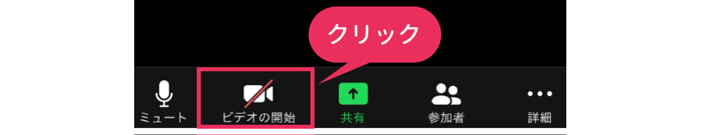 画面左下の「ビデオの開始」というアイコンをクリックすると、ビデオのON/OFFの設定ができます。