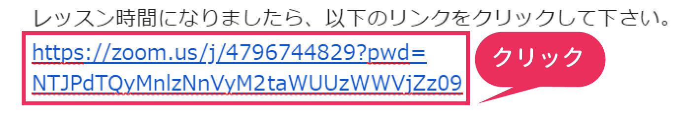レッスン予約完了メールのURLをクリックします。Zoomミーティングアプリに接続されます。