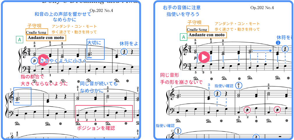 レッスンのポイントをまとめたキレイな楽譜でおうちの練習もやる気アップ!
