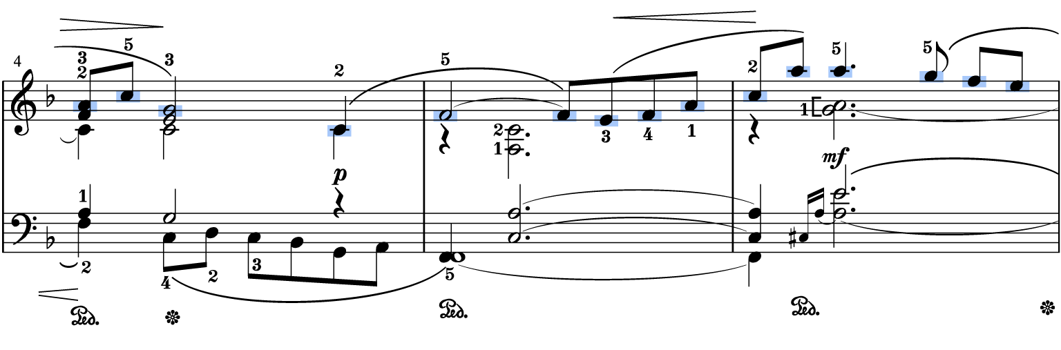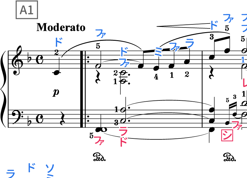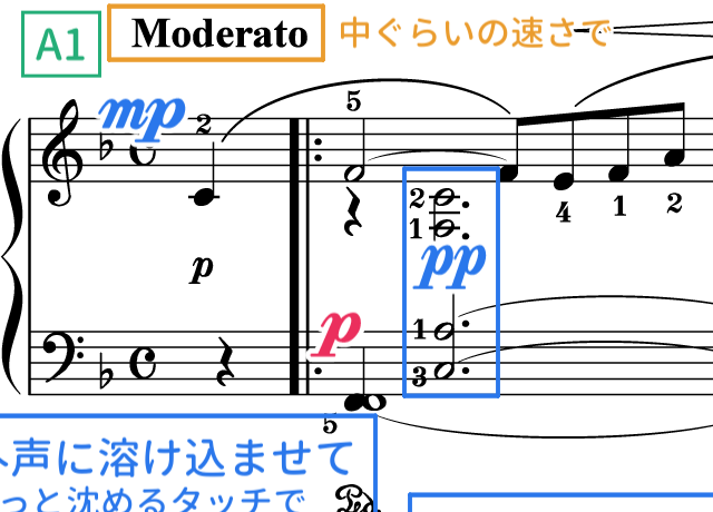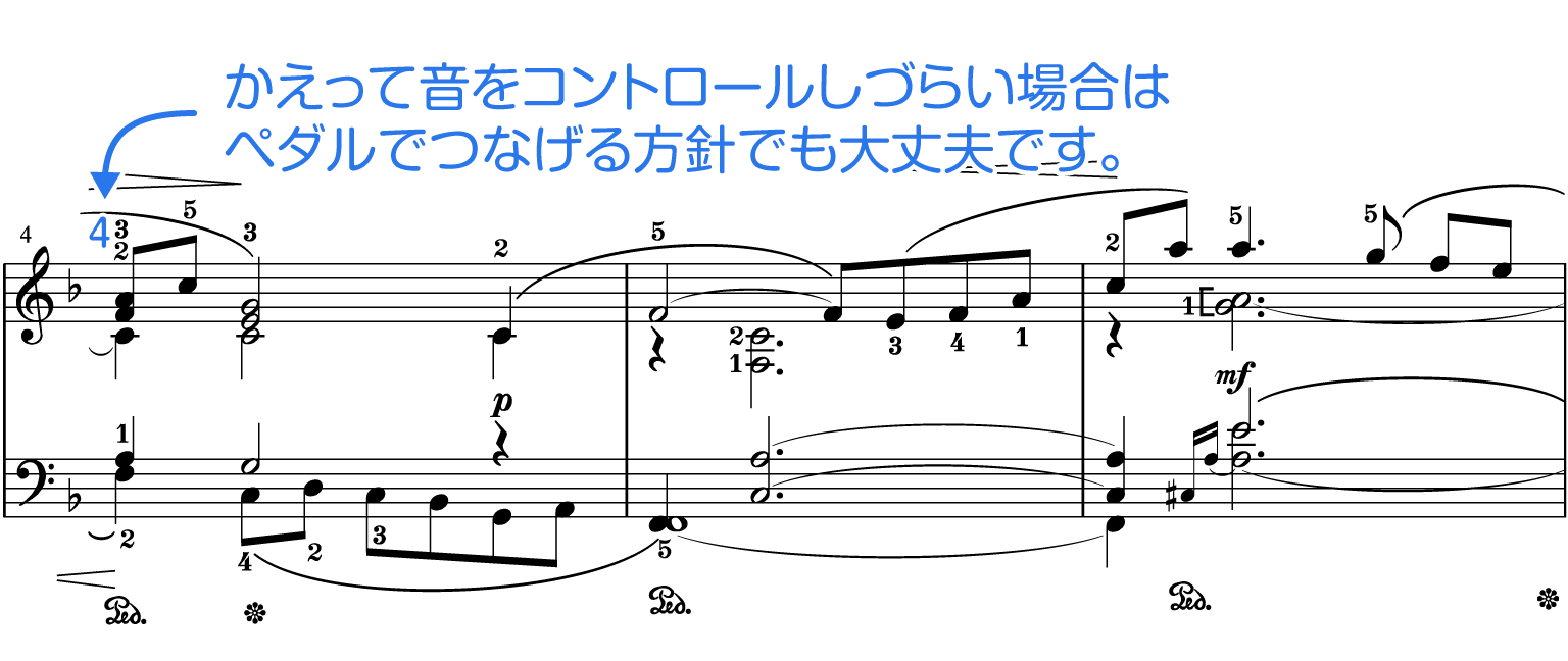 PiaDOORの楽譜は、ソプラノがレガートになるような指番号を採番しています。