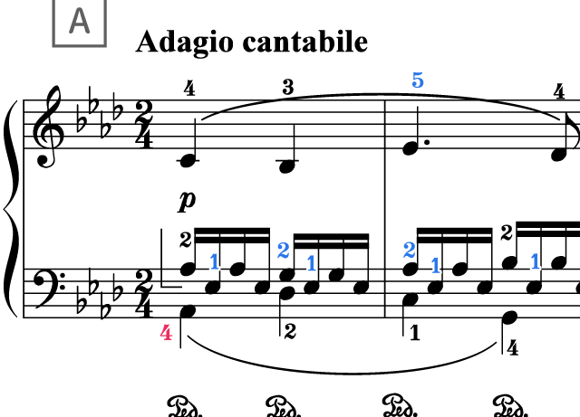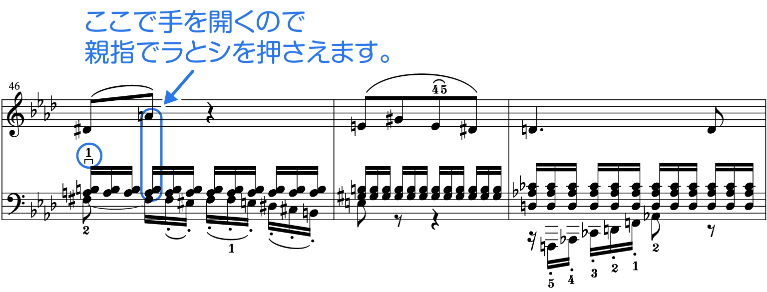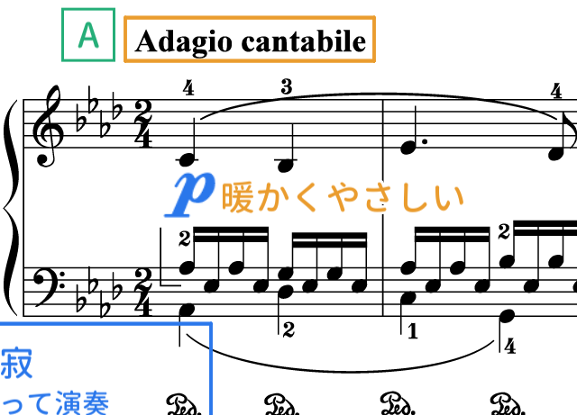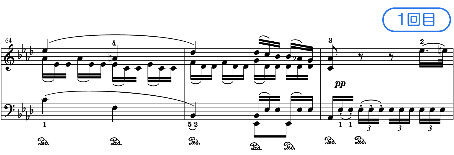 20小節目と21小節目のトリルの入れ方の基本です。