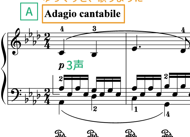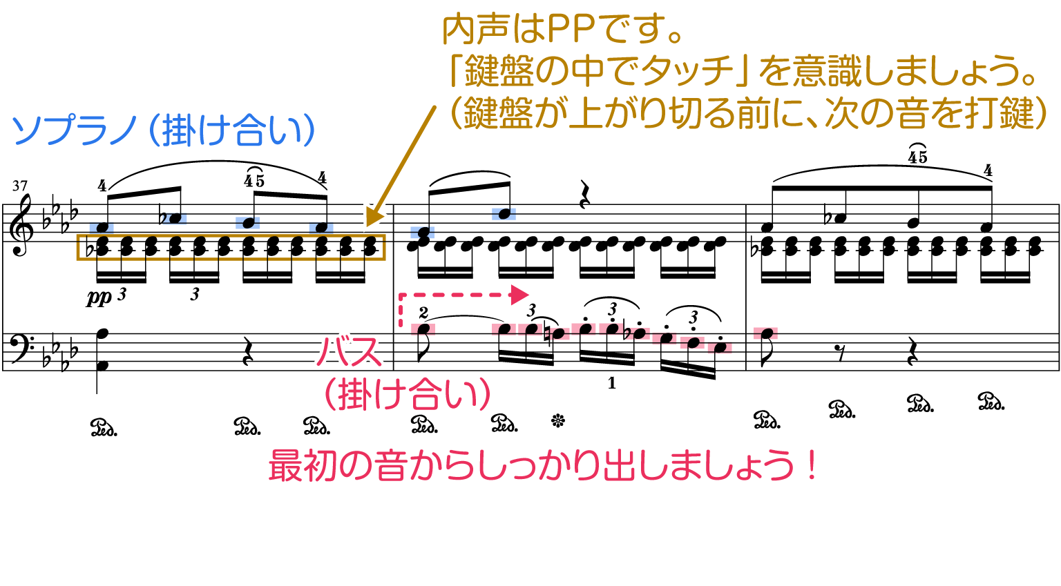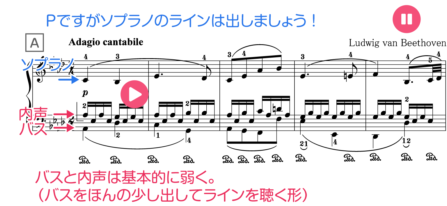 1. ソプラノ、バス、内声をバランス良く