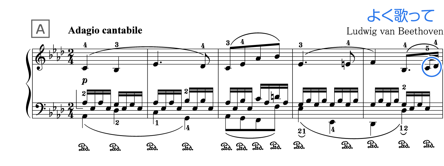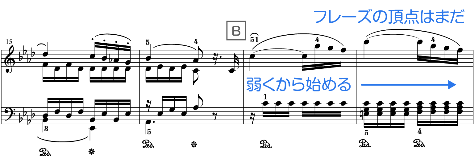 「B」は曲中に一度だけです。感情を込められるところです。