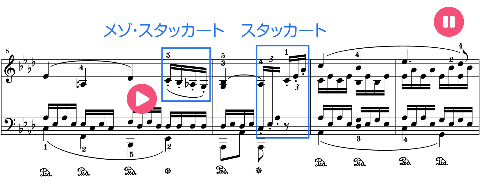スタッカートやメゾ・スタッカートは長めにとった方が曲のイメージに合うかもしれません。