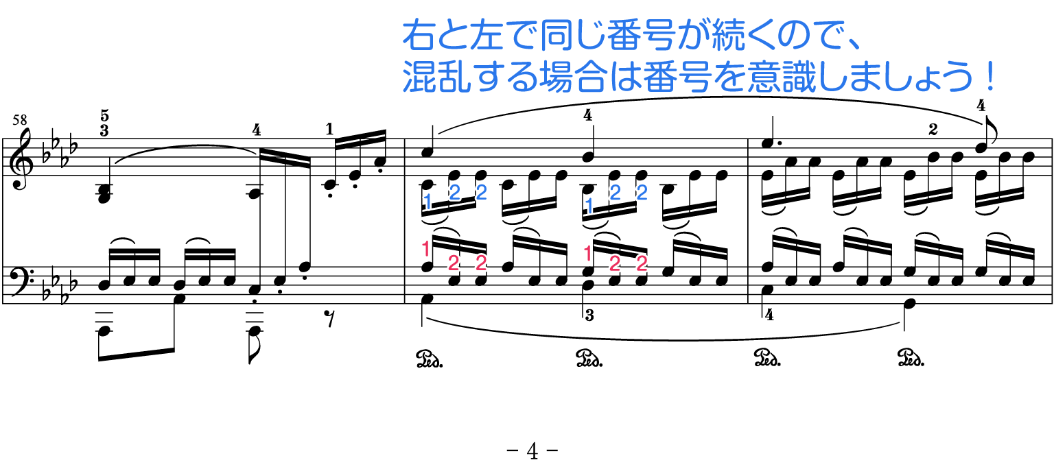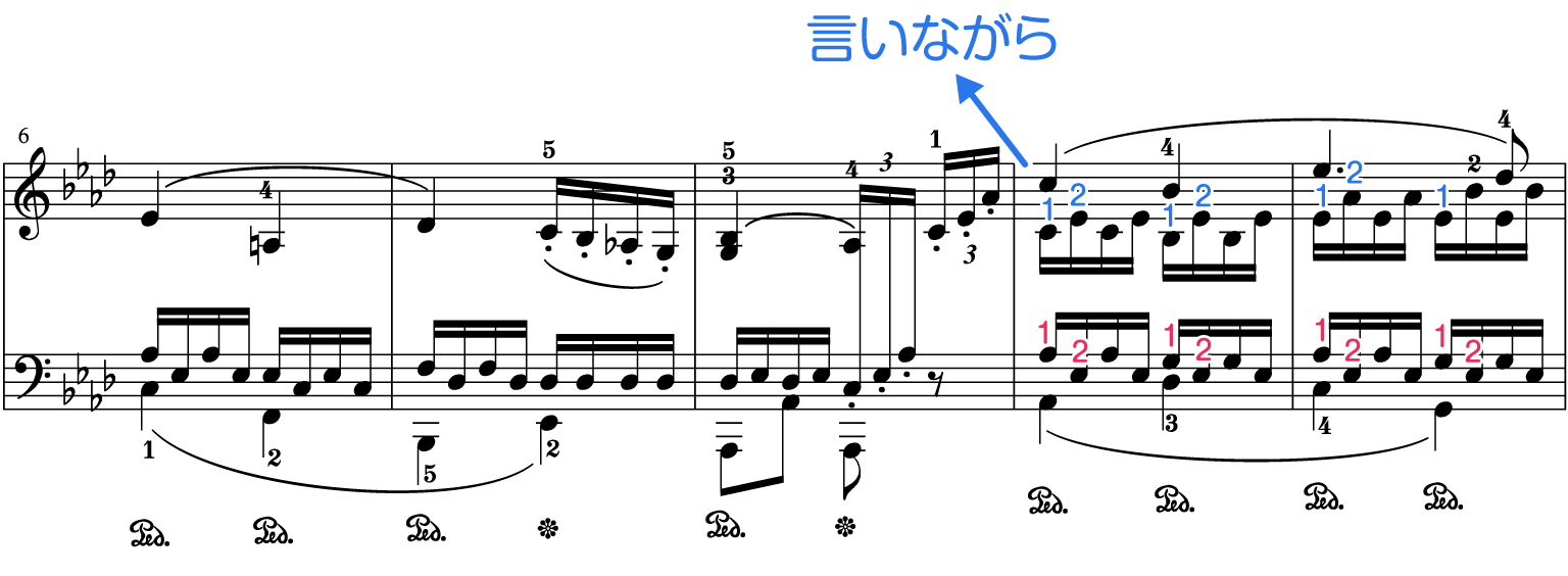 4. 後半の16分音符3連も指番号を言いながら