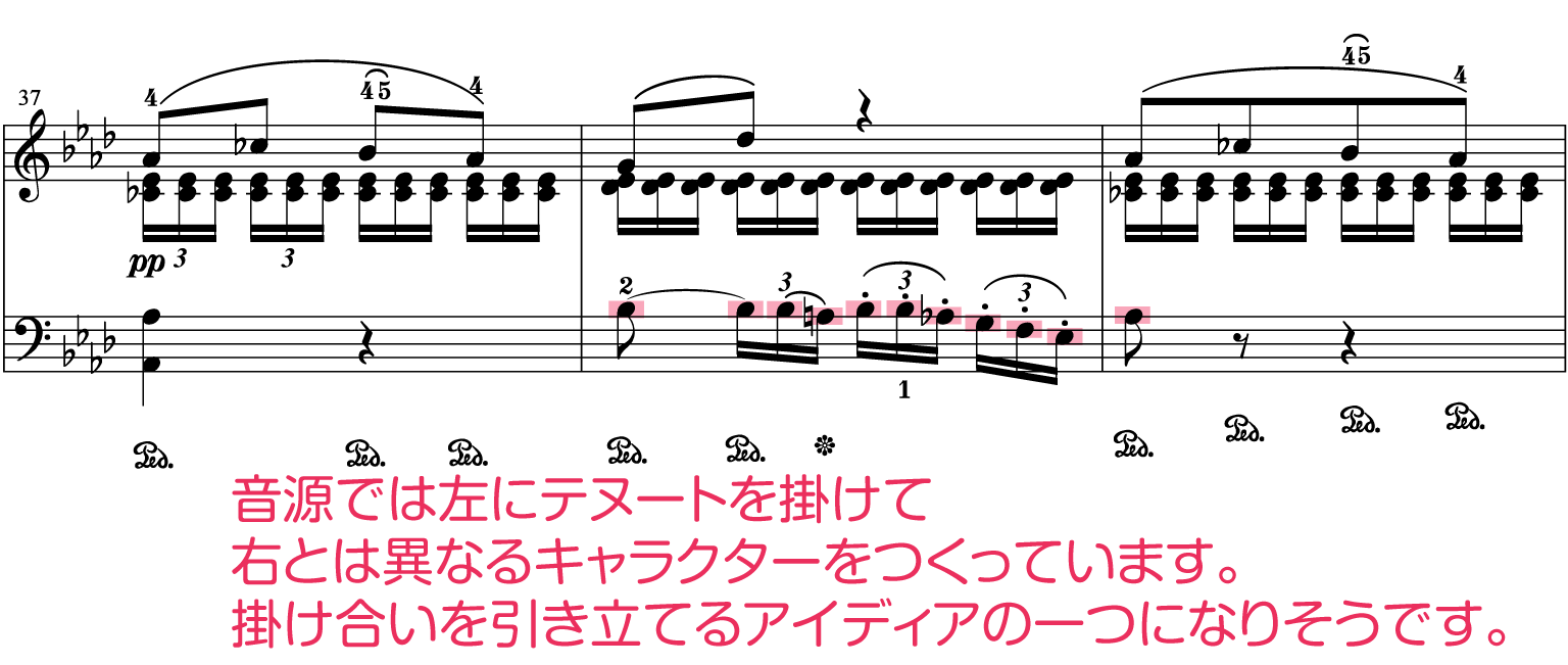 楽譜には強弱記号が少なく「rit.」も無いのですが、演奏者の工夫で色々な表現ができます。
