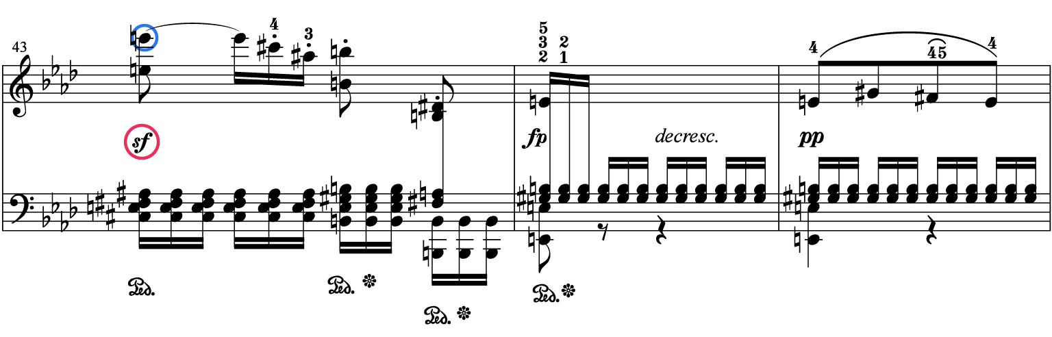 2. 3つのスフォルツァンドをフレーズの中で