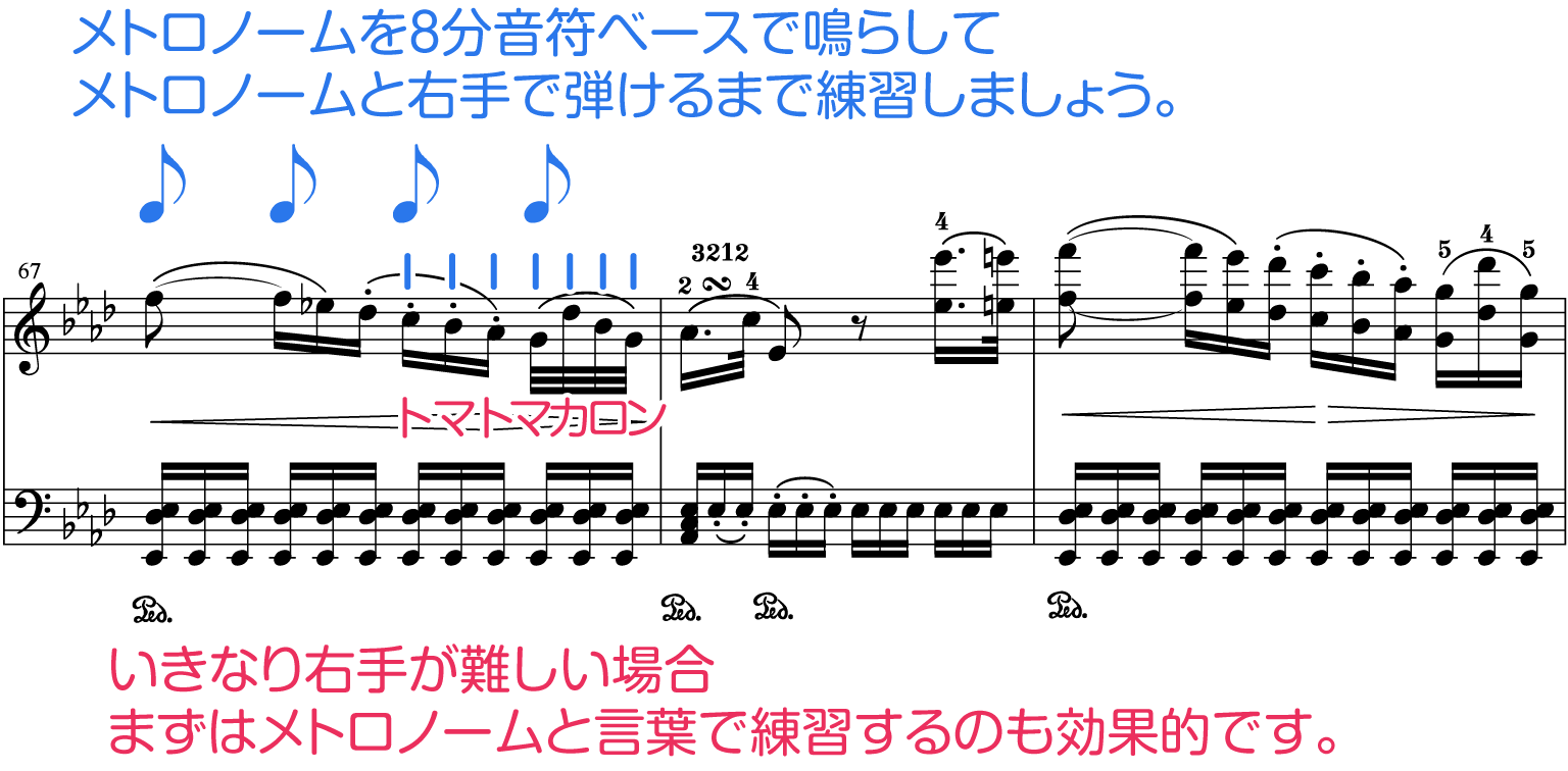 32分音符は楽譜通りに弾くと速く感じるかもしれません。