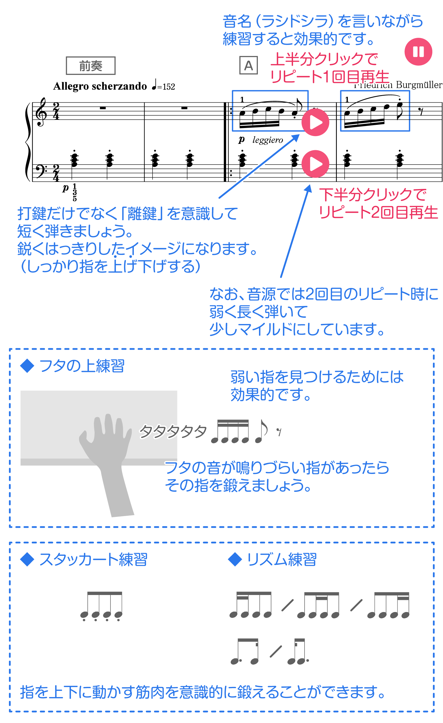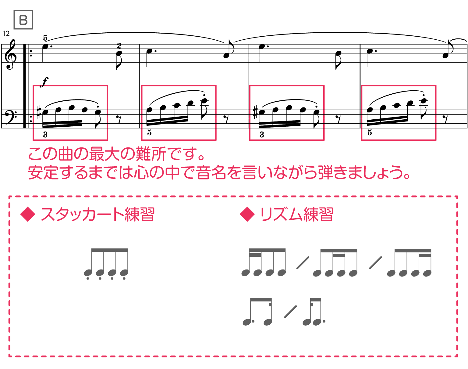 左手のスタッカート練習とリズム練習を