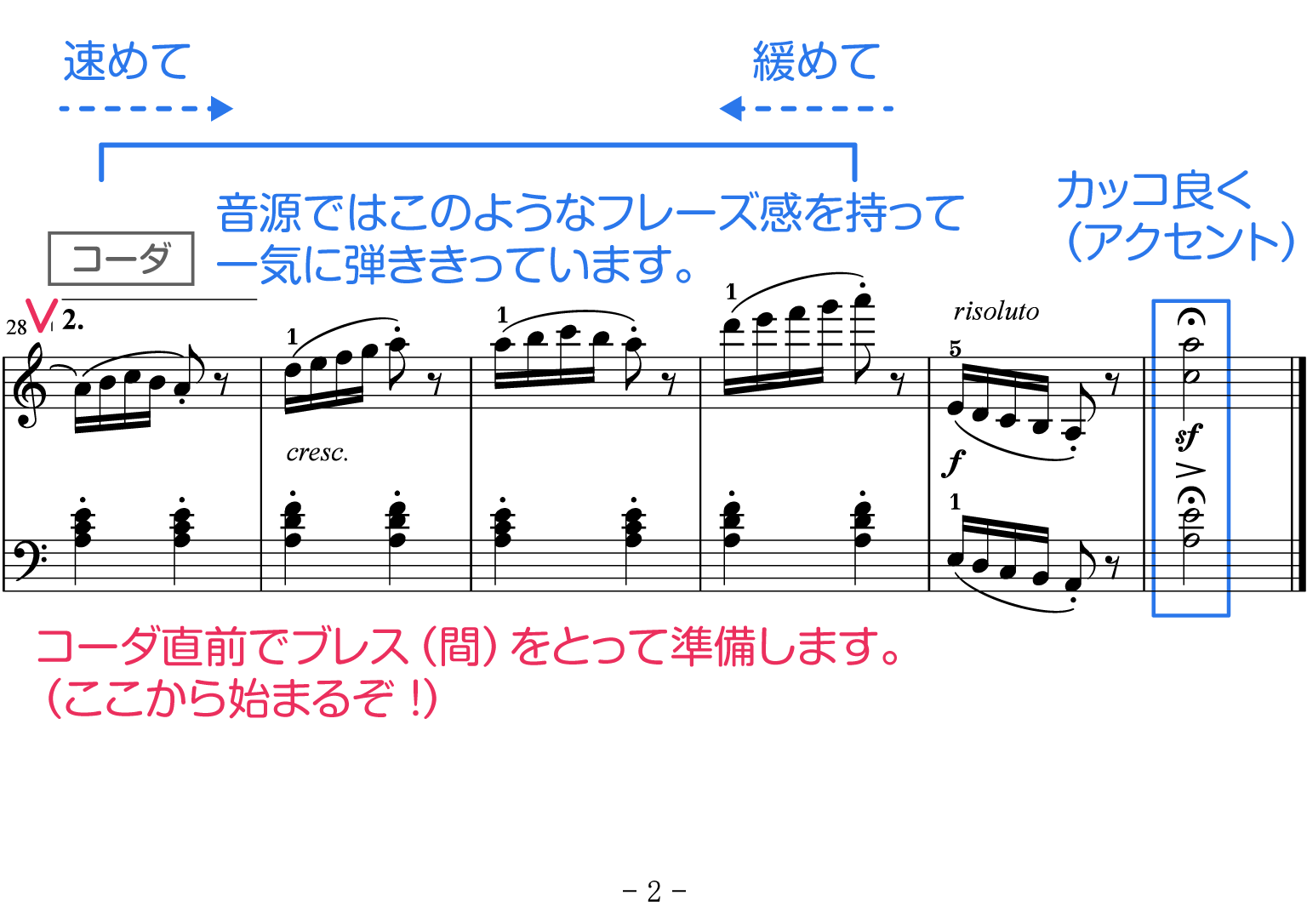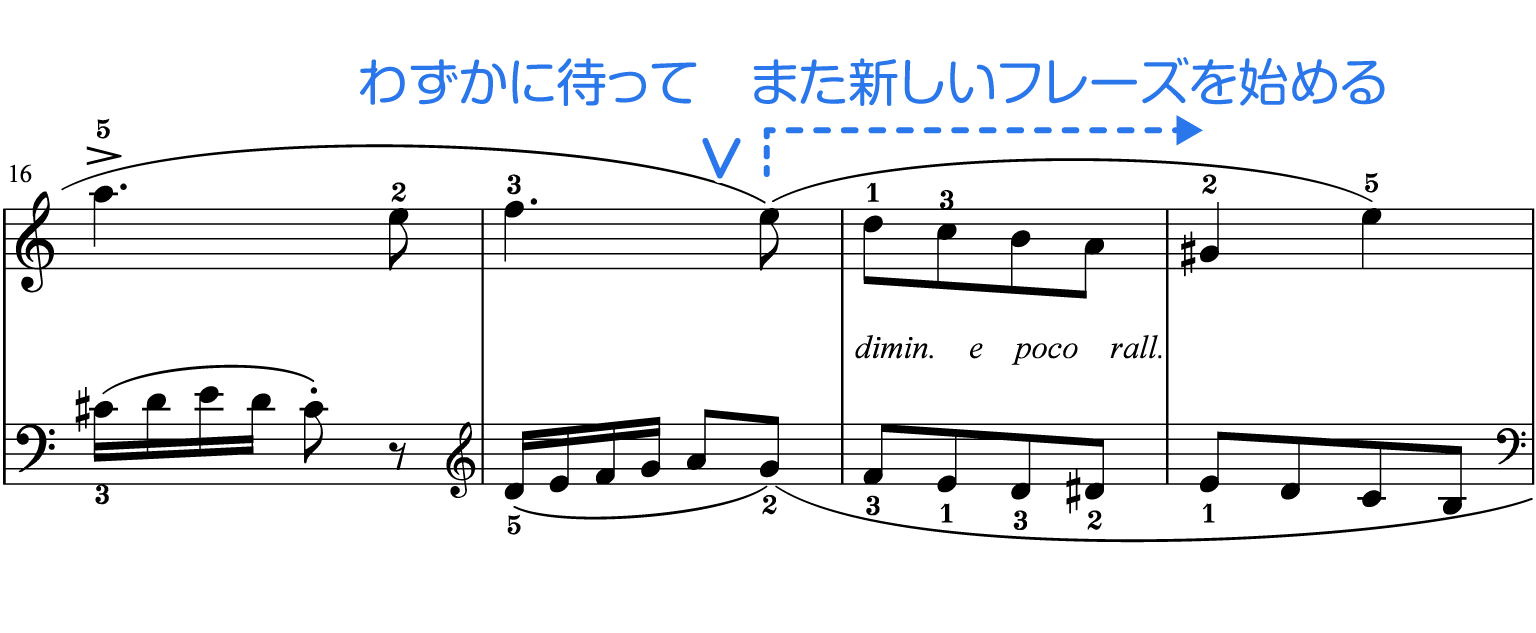 フレーズの終わりで一旦ゆったりさせるのも