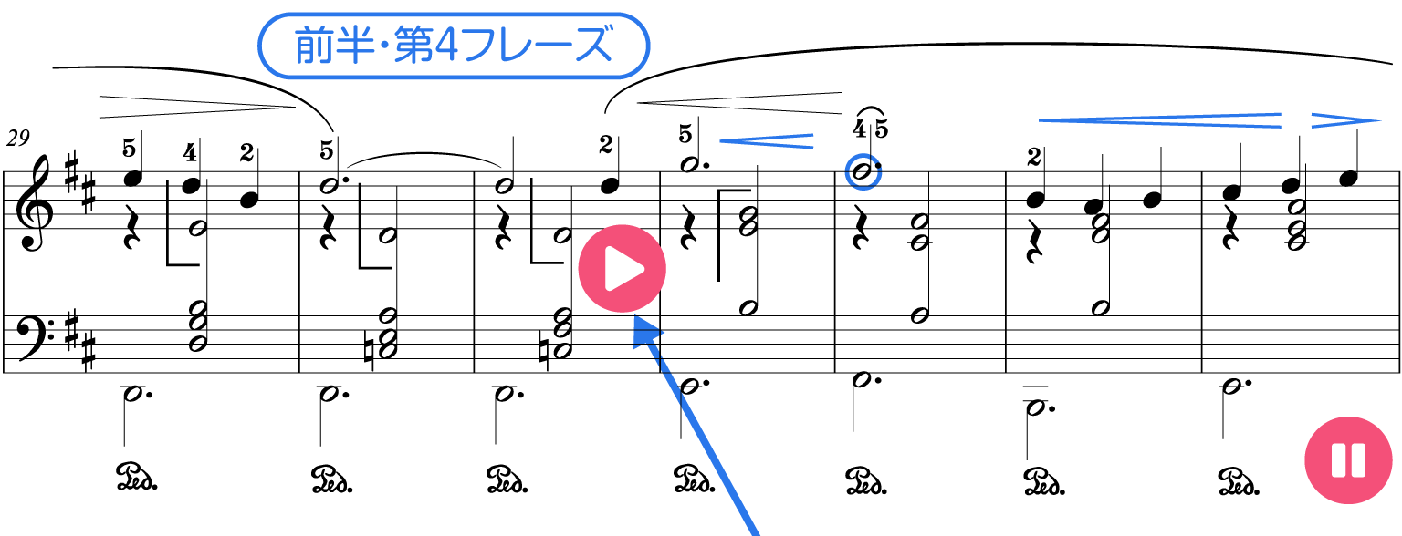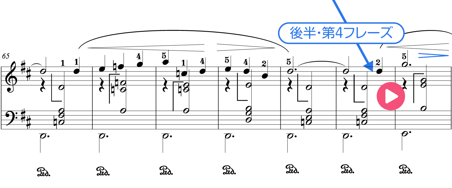 似たフレーズに違う表情をつける例は他の曲でも多く見られます。