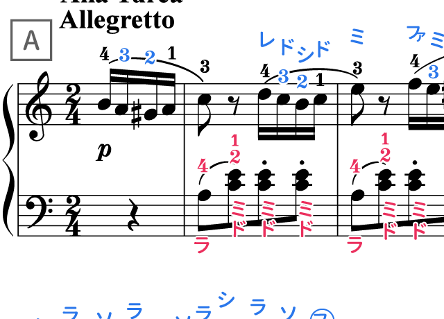 なお、モーツァルトの時代の曲は「装飾音の最初の音」を「拍の頭」に合わせるのが基本ですが、 この曲は(テンポが速いことから難しいこともあり)装飾音を前に出しているピアニストが多いです。