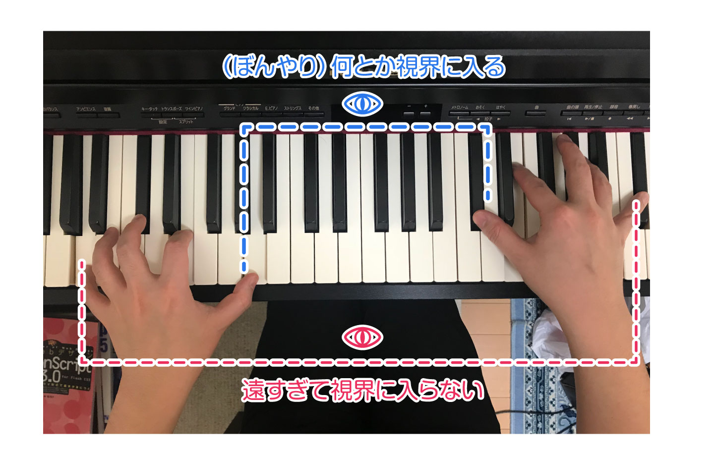 「オクターブの幅」を手の感覚で覚え、弾くときは1の指を見て弾きましょう!