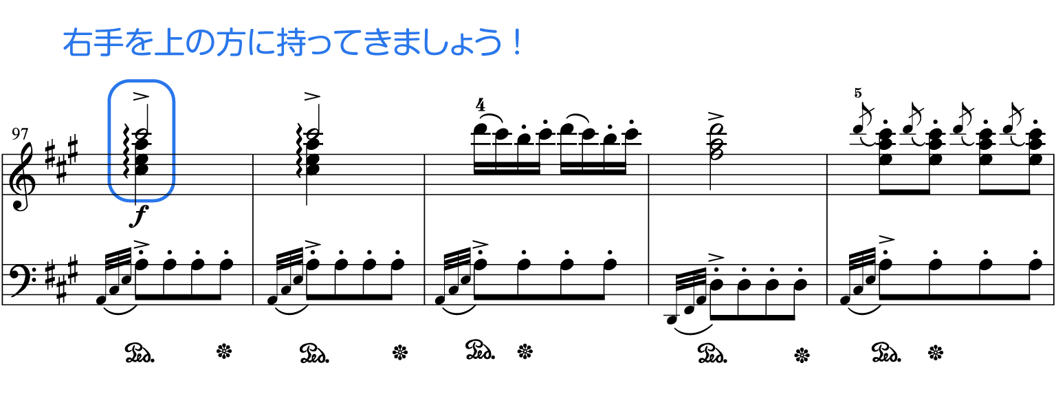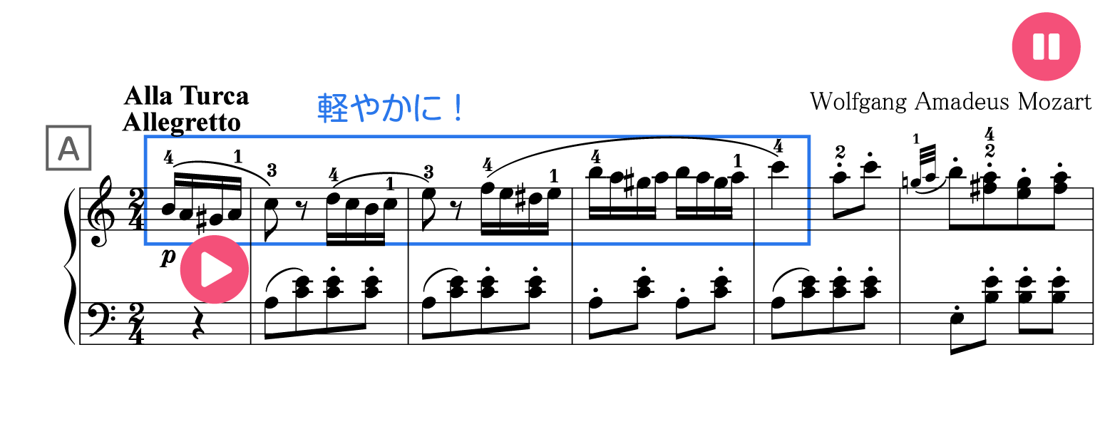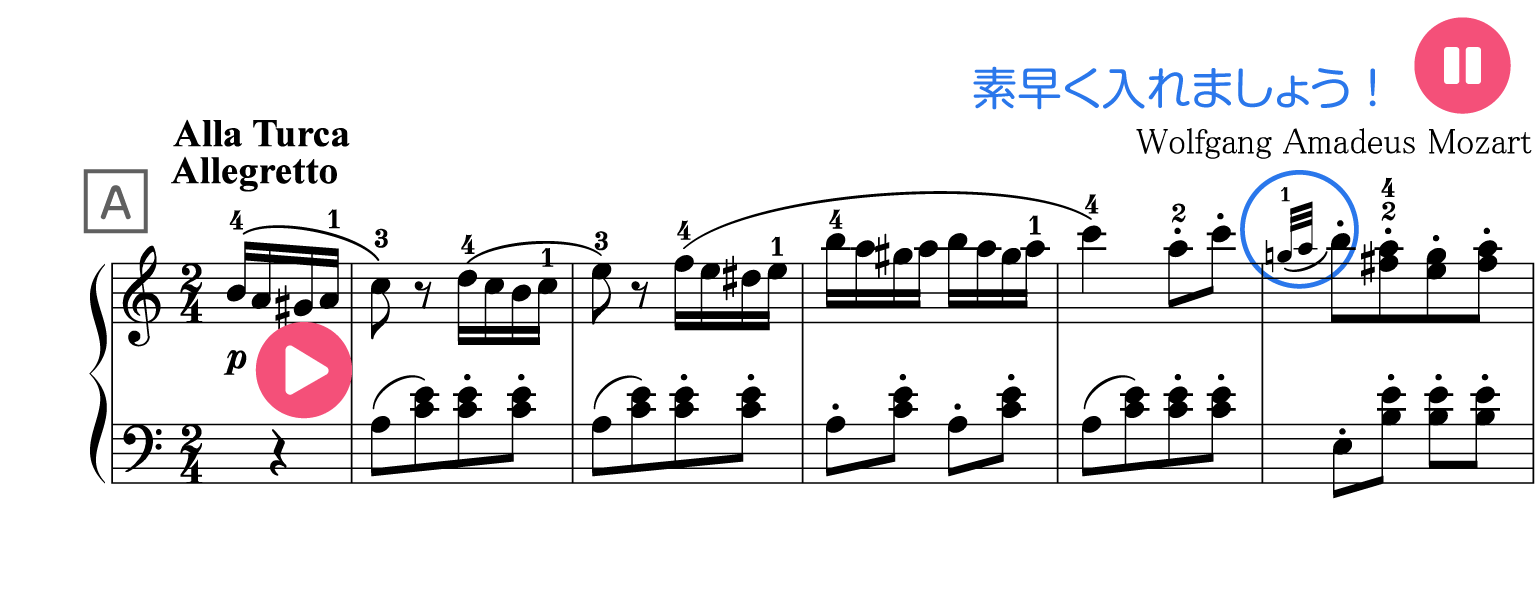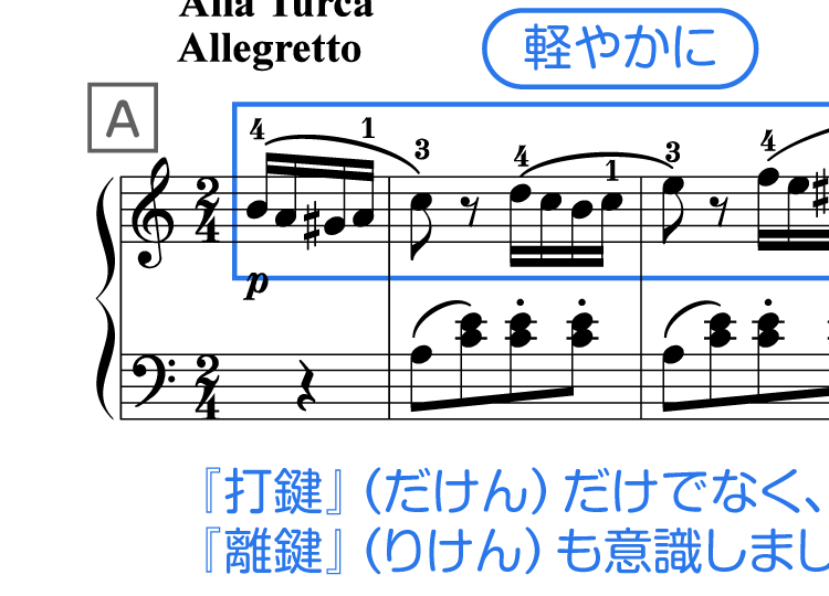 素早く指を上げることで、鍵盤を押している時間が短くなり、モーツァルトらしい軽やかなタッチで弾けるようになります。