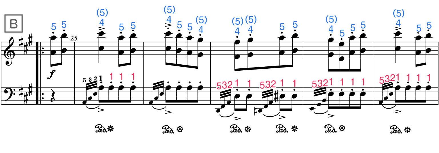 16分音符の速いパッセージがあるので指の独立が必要ですが、繰り返しが多く譜読みはしやすいです。