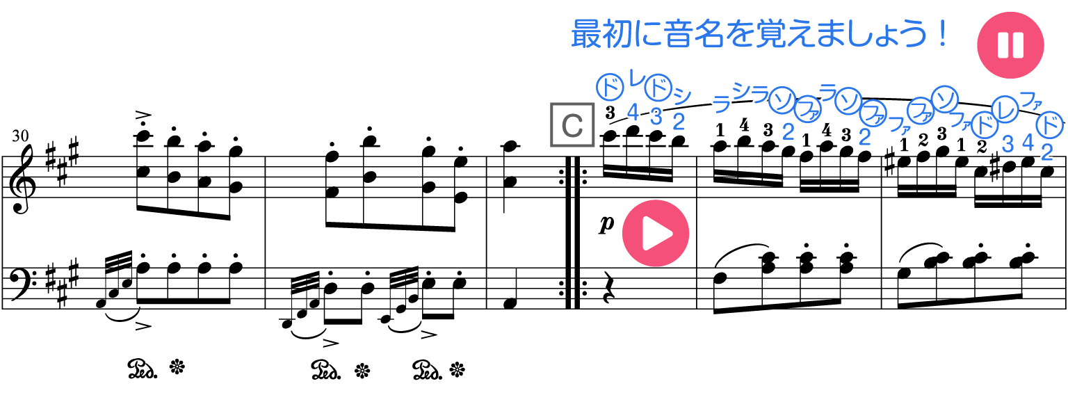 スラスラ覚えて言えるぐらいになったら、「音を言いながら」弾いてみましょう!