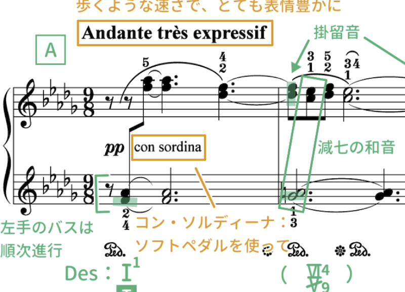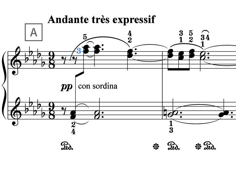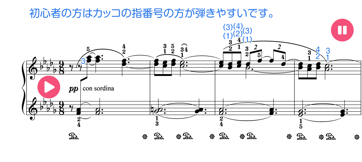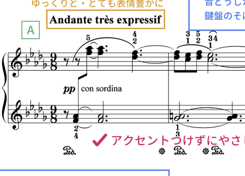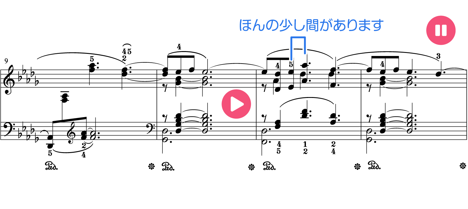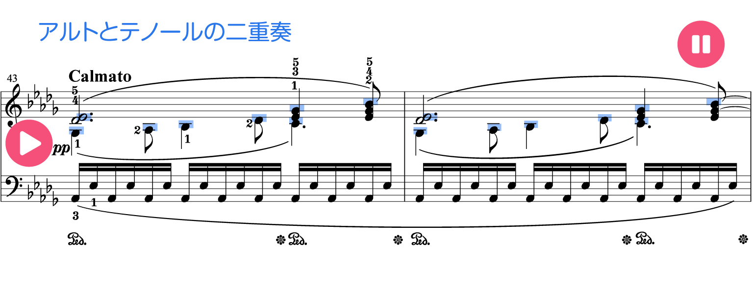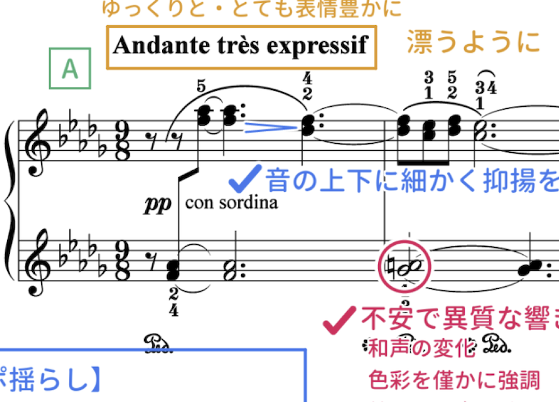 楽譜上では、アルペジオのスピードについて書かれていませんが、 力強く一気に弾くと『華やか』、弱く・揺らしながらだと『幻想的』なイメージになります。