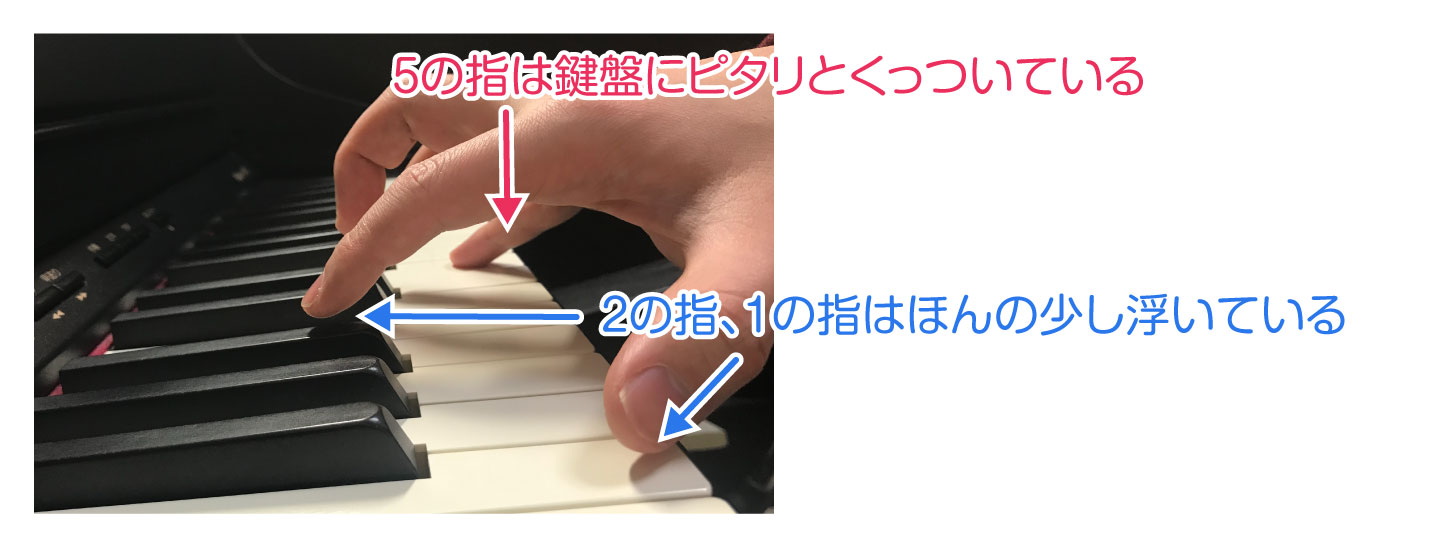 黒鍵と白鍵では高さが異なるので、それも考慮した上で「指の形」を決めていきましょう。