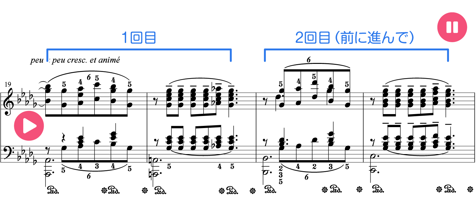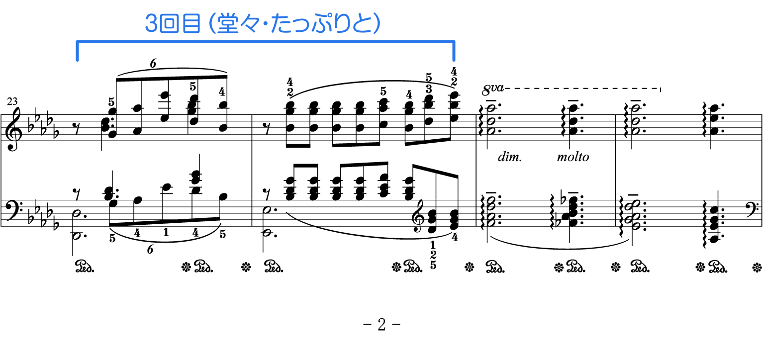 音源では3回目の頂点に向かって、このようにドラマを作っています。
