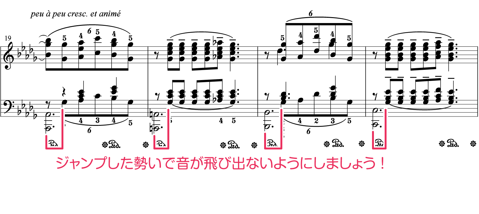 ジャンプした勢いで弾くのではなく、一旦ブレーキをかけてから弾いた方が、ピアニッシモにしやすいです。
